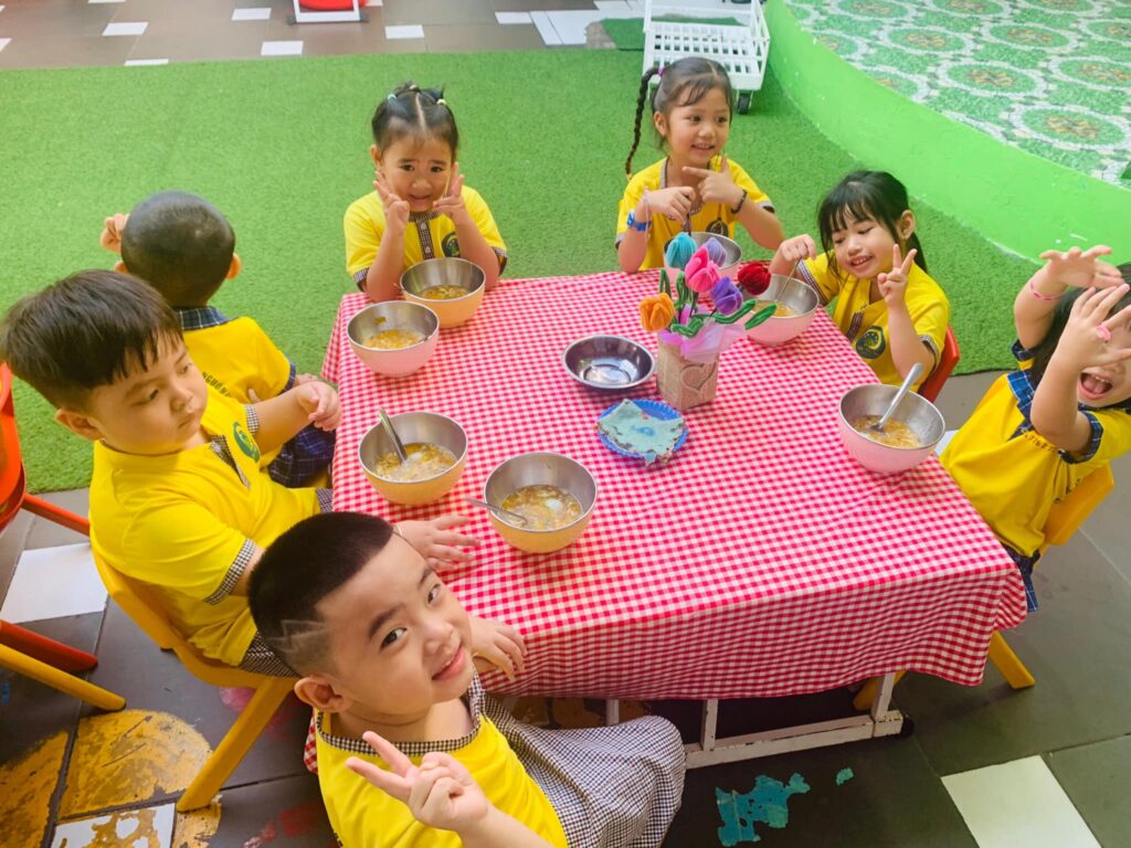 Chị Như chia sẻ: “Trộm vía từ ngày cho con ăn ở trường con đã tăng kg hơn trước. Mình cũng rất tin tưởng chế độ ăn uống tại trường. Các cô đều gửi thực đơn cho phụ huynh xem trước nên mình thấy rất yên tâm”.